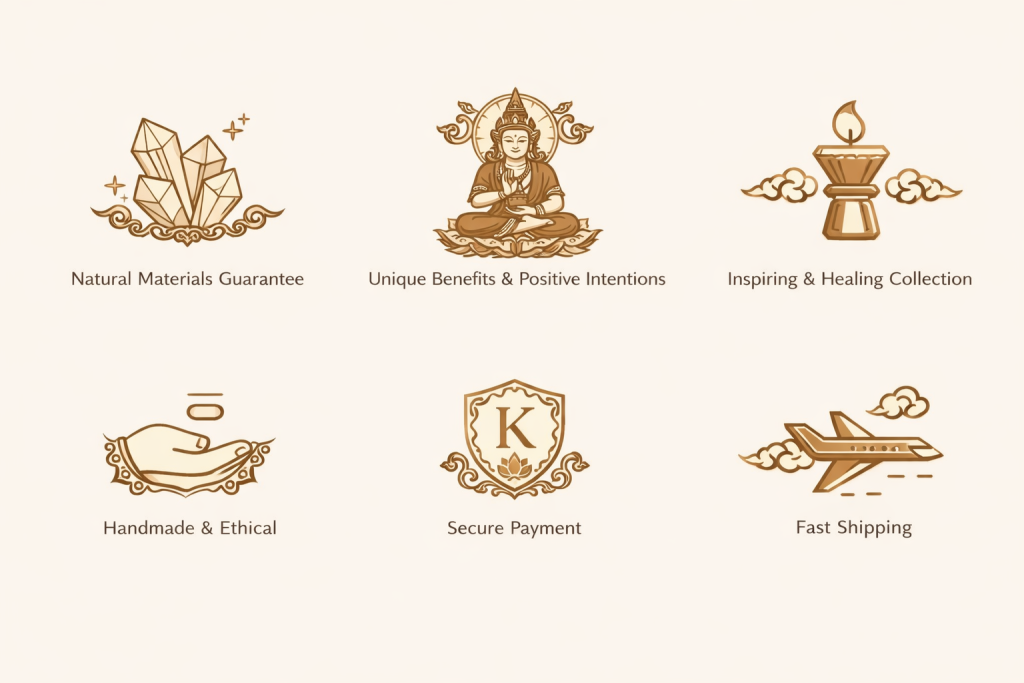 Our designs are inspired by Tibetan symbolism, traditional spiritual motifs, and the timeless beauty of natural stones. We create pieces for people who want their jewelry to feel meaningful, wearable, and personal—whether for daily use, gifting, or quiet moments of reflection.