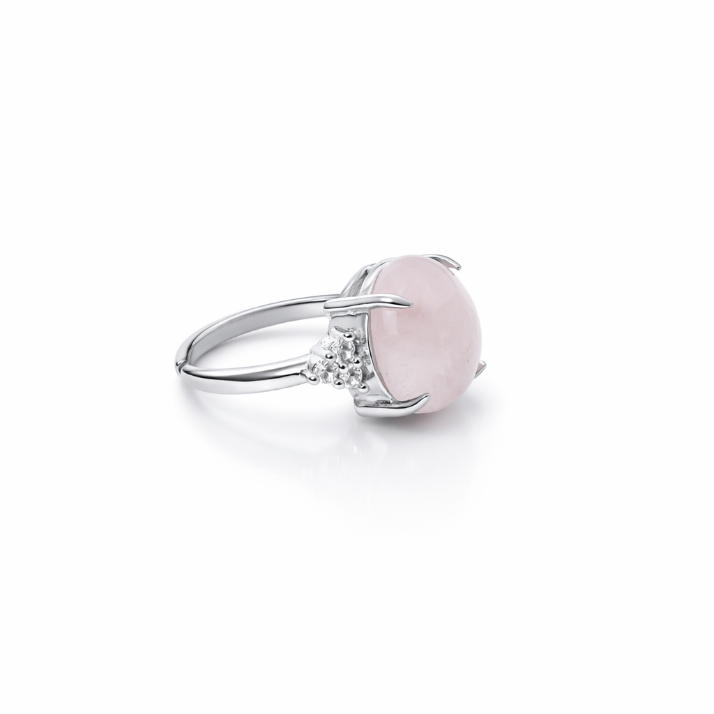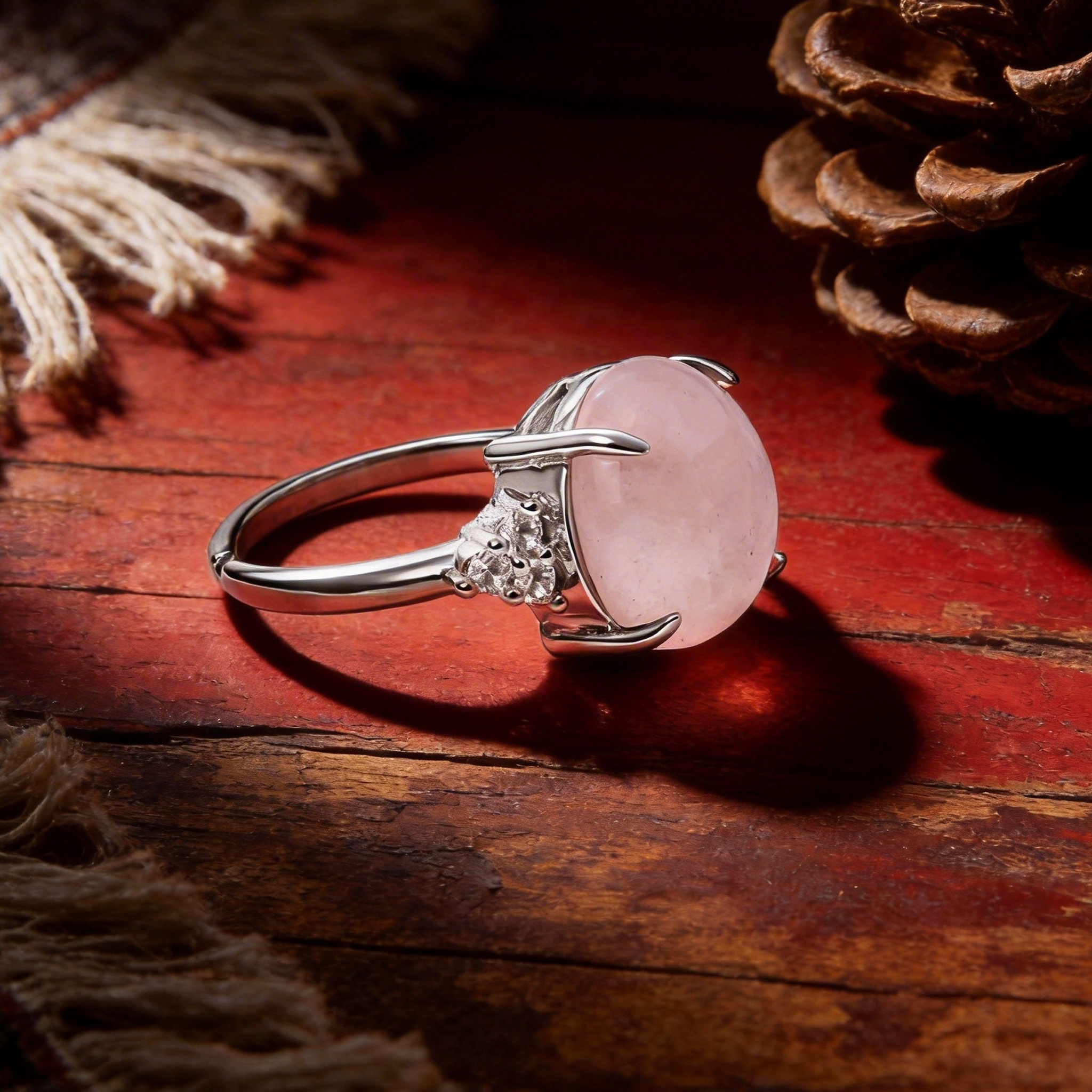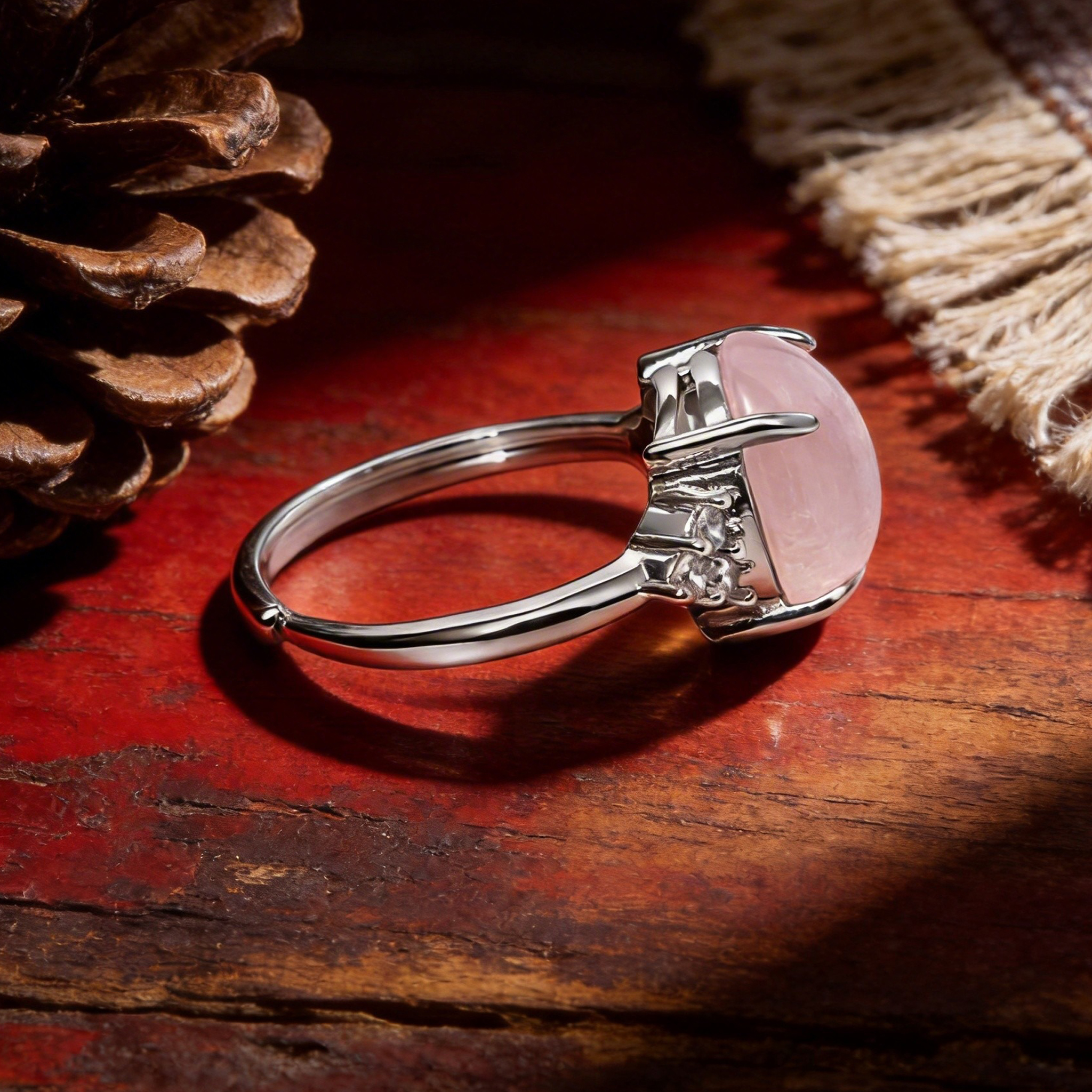 Soft, elegant, and full of symbolic charm, this 925 Sterling Silver Rose Quartz Ring is designed for those who appreciate jewelry that feels both beautiful and meaningful. Featuring a polished oval rose quartz center stone set in a refined sterling silver band, this ring combines timeless femininity with everyday sophistication.