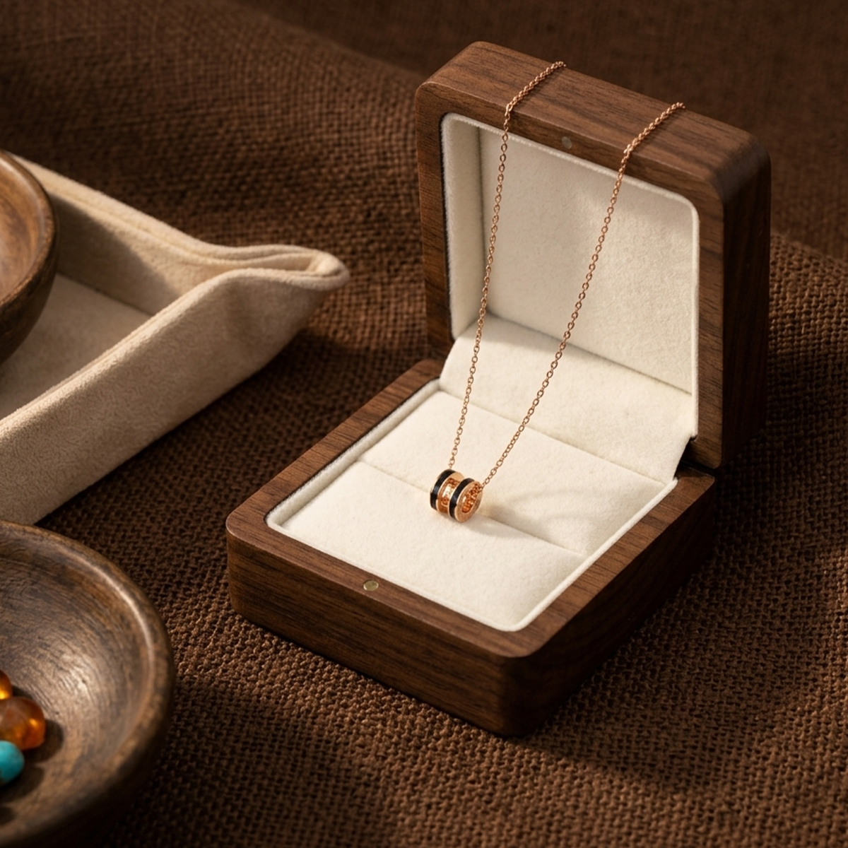 Elevate your everyday style with this sleek, minimalist cylinder pendant necklace. Forged from high-grade copper with a thick, premium 18K rose gold plating finish, this piece features a chic cylindrical pendant inlaid with smooth black enamel, creating a striking contrast of warm rose gold and deep black. Its clean, modern design makes it a versatile, sophisticated staple for daily wear and special occasions alike. Key Features Premium 18K Rose Gold Plated Construction: Crafted with a durable high-quality copper base and thick, long-lasting 18K real rose gold plating, this necklace offers excellent tarnish and fade resistance, maintaining its lustrous, warm finish for extended wear. The smooth, hypoallergenic surface is gentle on sensitive skin, ensuring all-day comfort. Iconic Cylinder Design: The signature cylindrical pendant is inlaid with smooth black enamel, showcasing a bold, modern silhouette that adds understated luxury to any outfit. The compact, lightweight design sits perfectly against the neck, making it ideal for layering or wearing alone. Adjustable Delicate Chain: Equipped with a slim, polished rose gold-plated cable chain and a secure lobster clasp, plus an adjustable extension tail, you can customize the length to complement any neckline—from crew necks to V-necks and off-shoulder styles. Versatile Minimalist Luxury: Seamlessly elevates casual daily looks, office wear, date night ensembles, and formal event outfits, making it a go-to piece for every moment and a timeless addition to any jewelry collection. Symbolism & Meaning The cylindrical pendant carries rich, heartfelt symbolism, making this necklace far more than just a beautiful accessory: Eternity: The circular cylinder shape represents eternity and infinite love, a reminder that true connections and bonds are timeless and unbroken. Connection: It symbolizes the unbreakable connection between loved ones, whether romantic partners, family, or dear friends, keeping those you care about close to your heart. Timelessness: The sleek, minimalist design reflects timeless elegance, a tribute to enduring style and the beauty of moments that last a lifetime. Balance: The contrast of warm rose gold and deep black enamel represents balance and harmony, encouraging equilibrium in your life, relationships, and inner self. This necklace is a deeply thoughtful gift for any occasion. Whether for yourself, your mother, best friend, or partner, it’s the perfect present for birthdays, anniversaries, Valentine’s Day, Mother’s Day, graduations, or any special milestone, conveying sincere wishes for eternal love, connection, and lifelong happiness.